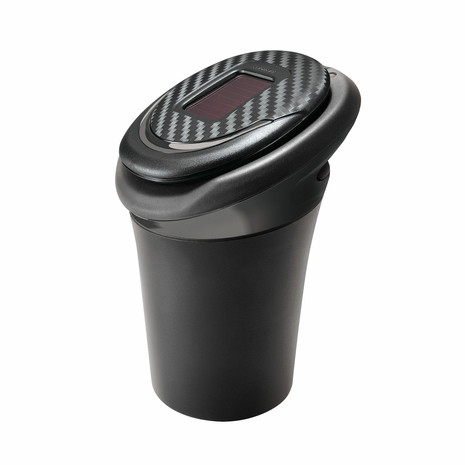 走行中でも消しやすいステンレスパンチングプレートの火消し面。フタには高い気密性を保つシリコーンパッキン付き。車内を彩るブルーLED付き(ソーラー充電式)。高い耐火性を誇るフェノールボディ。