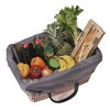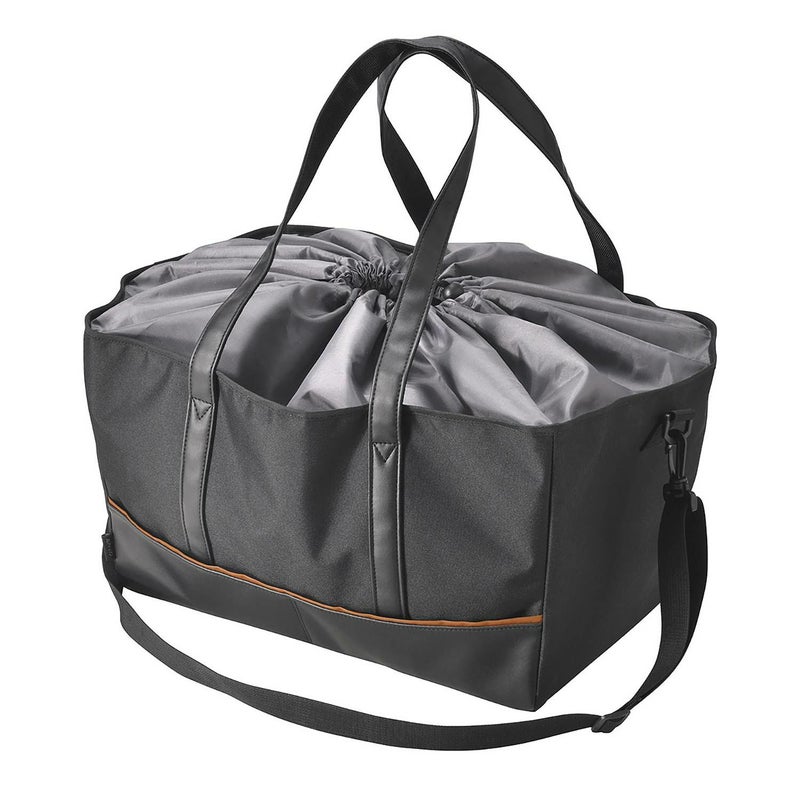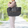 車のシートに取付けられ、シートからずり落ちないショッピングバッグ。エコバッグとしても使え、レジ袋の袋詰めが不要に。