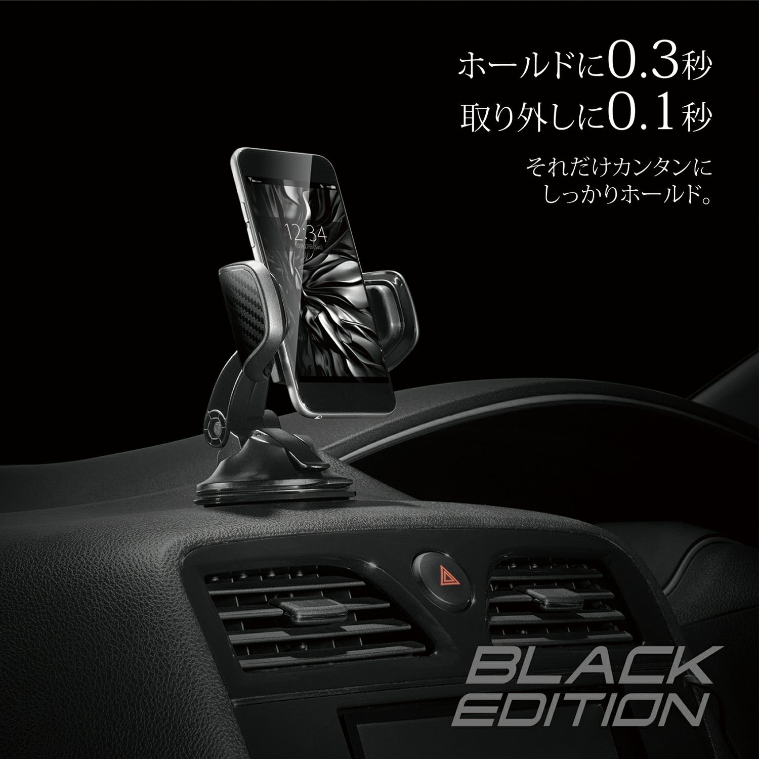 ブラックエディションシリーズの強力な吸盤で取り付けるスマートフォンホルダーです。