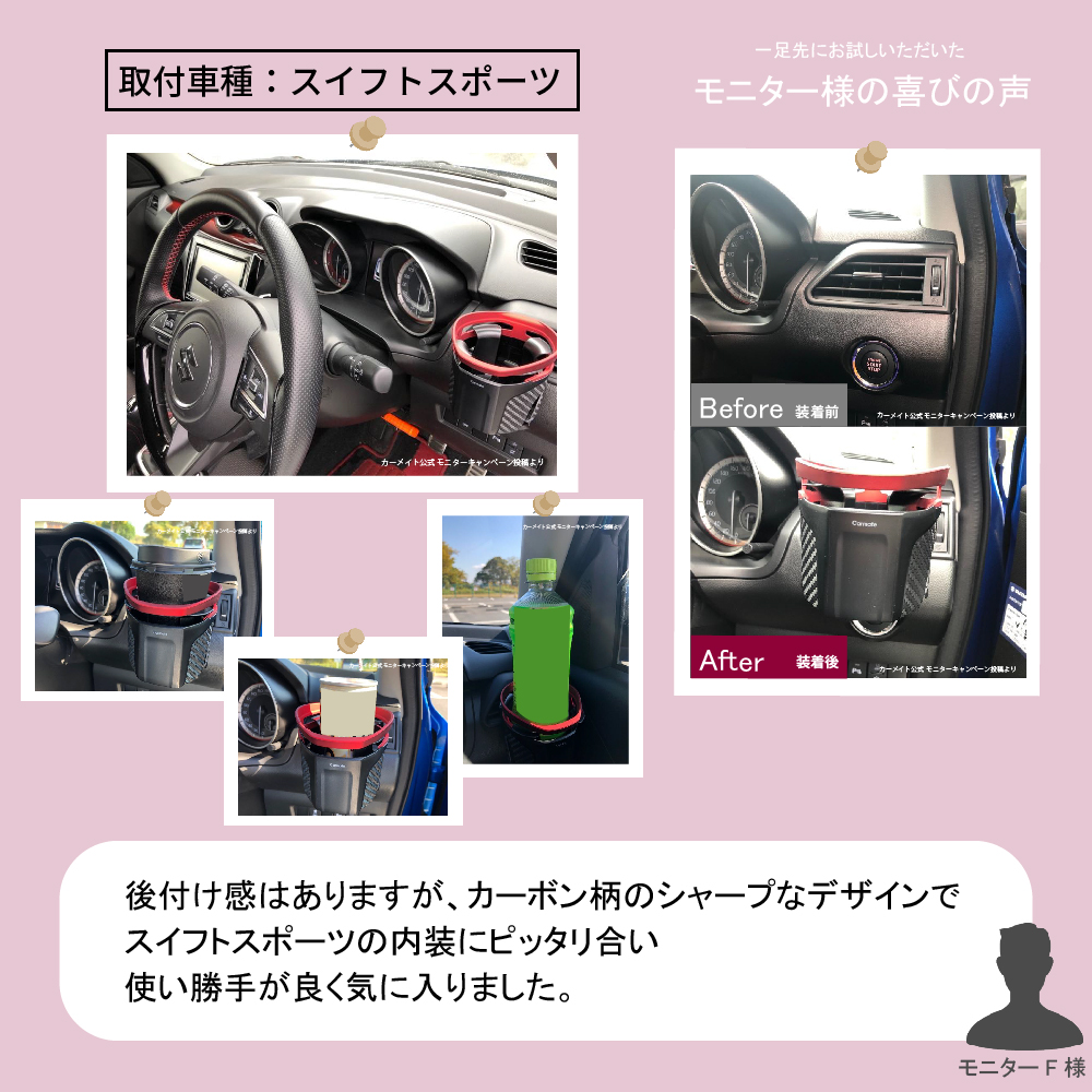 車両の内装でも増えているスポーティな見た目のカーボン調デザインを採用し、本製品を取り付けることで車内のドレスアップにもなるデザインを施しました。