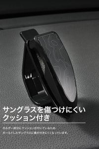 サンバイザーに取り付けてホルダーを開き、サングラスのテンプル部を差し込むことでホールドできます。