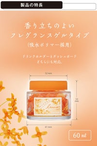 車内を金木犀の優しい香りで包みます。固形(吸水ポリマー)タイプの置き型芳香剤。