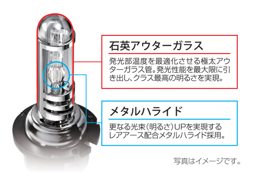 発光部に封入されたレアアース配合メタルハライドはその温度環境で、6000ケルビン以上の高色温度であっても、