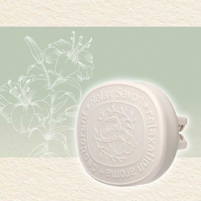 石鹸のような見た目のクリップタイプの芳香剤で、香りもリリーサボンという