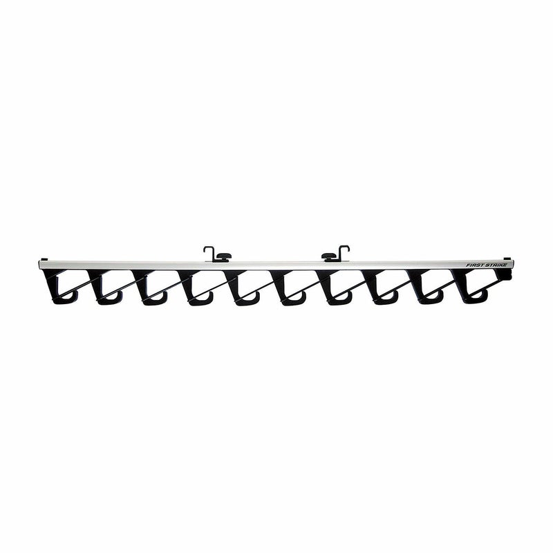 10本積み。SWホルダーをロッドホルダーのフロントとリアの中間に装着すると、振出竿や2ピースロッド、ギャフやタモの柄との混載ができます。J型フックの本数は調節できます。