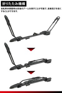 自転車未積載時は前後のアームを倒すことが可能で、装着高さを低くすることができます。