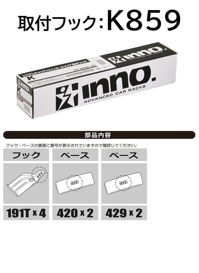INNOベースキャリアの取付けに必要な車種別の取付フックです。