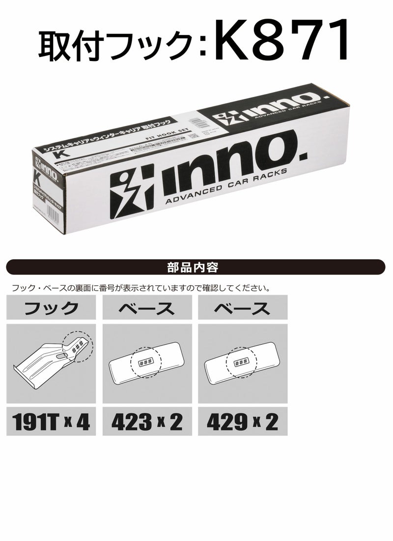 INNOベースキャリアの取付けに必要な車種別の取付フックです。
