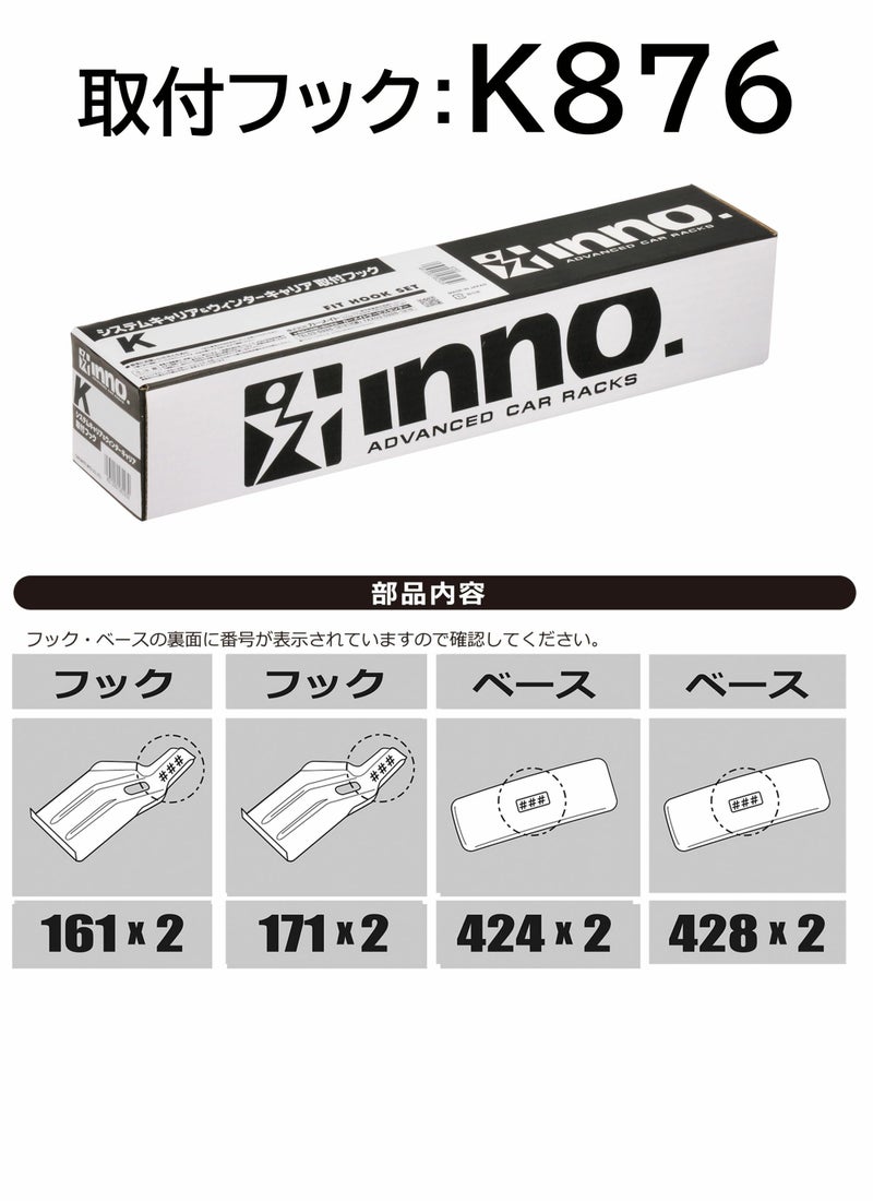INNOベースキャリアの取付けに必要な車種別の取付フックです。