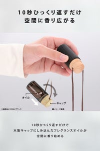 10秒ひっくり返すことで、フレグランスオイルが木製キャップにしみ込み、空間に香り始めます。