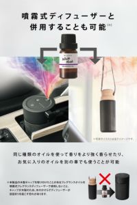 噴霧式フレグランスディフューザーと併用することで同じ種類のオイルを使って香りをより強く香らせることが可能。