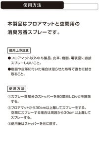本製品をフロアマットや空間にスプレーするだけで、いやな臭いを消臭しながら、上質な香りが広がります。
