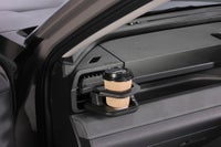 RAV4専用デザインで内装との一体感を高めたエアコン取付ドリンクホルダー。スイングアームにより様々なサイズの容器に対応。