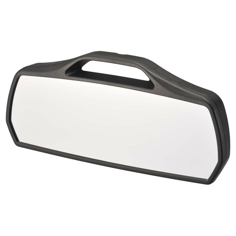車のミラーを変えるとなると純正ルームミラーを取り外したり、工具を使ってネジで締め付けたりと想像されるかもしれませんが、純正ルームミラーを覆いかぶせるようなイメージで純正ルームミラーの上下を挟むだけなので、とても簡単に取り付けることができます。金属製のプレートとトーションスプリングによって強固に固定され、長期間の使用に耐える設計になっています。また、純正ルームミラーに触れる3個所にグリップ性のあるクッションテープを貼り付けているので、純正ルームミラーへの密着性を高めるとともに、純正ルームミラーに傷をつける心配も必要ありません。