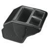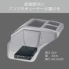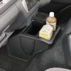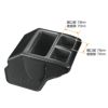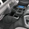ハイエース専用設計 コンソールボックス。細缶から500mm紙パック飲料が入るドリンクホルダーが2か所、捨てやすい位置にあるゴミ箱を備える多機能なコンソールボックスです。
