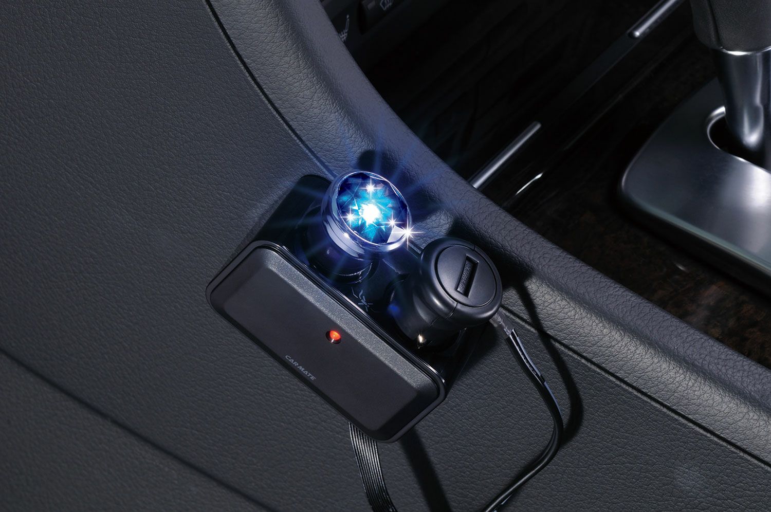 シガープラグに差し込むだけでダイヤカットの輝き。
