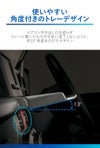 トレーは、水平ではなくインパネ側から手前に向かって約13°角度を付けたデザインにしています。角度を付けることで、エアコン吹き出し口を遮ることがなく、トレーに置いた物が、手前側に落下しにくくなっています。