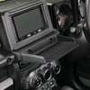 ジムニー専用デザインなので、一般的な黒樹脂ではなくジムニーの内装色と同じ色になるように調色した樹脂を使用しています。ボディ表面はジムニーの内装同等の処理を施し、まるで純正品かのような仕上がりに。ベース部とトレー部は2本のM8ボルトで固定しているので、必要に応じて取り外すことも可能です。