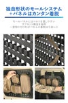 本製品にはMOLLE(モール)システムを採用しており、モールシステムに対応したポーチやバッグなどを取り付け、スマートに収納することが出来ます。また、MOLLEシステムに対応していないアウトドアギアなどのアイテムも付属のアタッチメント4種(各2個)により簡単に取り付けることができます。