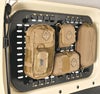 MOLLEの規格サイズに則って配置された帯状もしくは格子状の装着部が備わっており、編み込むようにポーチなどのMOLLE対応アイテムを装着できるようになっています。