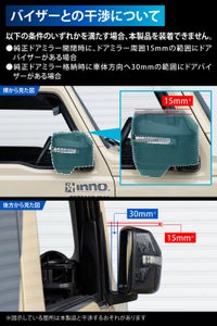 ・純正ドアミラー格納時に車体方向へ30mmの範囲にドアバイザーがある場合