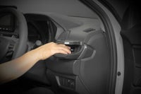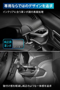WR-V専用デザインなので、インパネからドリンクホルダーへ自然に繋がるように革シボ加工を施し、アームのフロント部分には水平基調のインテリアに合うダークシルバーのラインをアクセントに入れることでWR-Vの内装にマッチする仕上がりにしています。(特別仕様車などを除く)