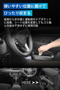 ・たまったゴミを捨てる際は、本製品をドアポケットから取り出しフタを開けて中のゴミを捨ててください。