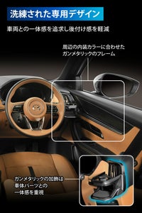 CX-60/CX-80の内装デザインに合わせた専用設計デザイン。内装の意匠とマッチする製品形状と、可能な限り同色になるように調色した表面処理を採用。エアコン吹き出し口の加飾に合わせたガンメタリックフレームで、車両との一体感を目指しました。