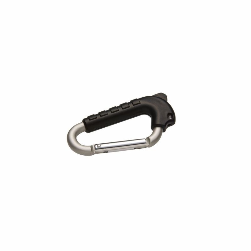 吸収した静電気でランプが点灯。カラビナ形状でカギ等を束ねるのに便利。