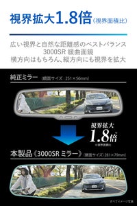 広い視界と自然な距離感を両立させた3000SR緩曲面鏡を採用。横方向はもちろん縦方向にも視界が広がり、ゆとりのあるドライビングに貢献します。