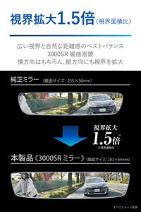 広い視界と自然な距離感を両立させた3000SR緩曲面鏡を採用。横方向はもちろん縦方向にも視界が広がり、ゆとりのあるドライビングに貢献します。