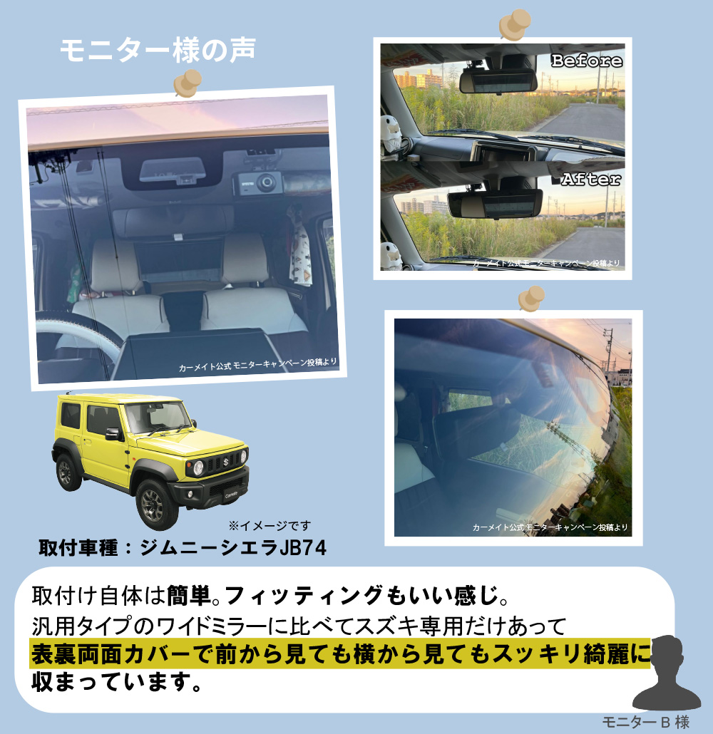 スズキ車専用に設計された後付け感のないワイドリアビューミラー&カバー