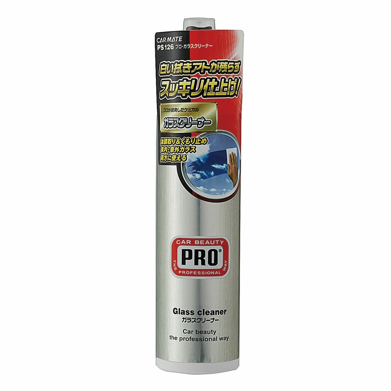 ガラス表面の油膜、虫跡、タバコのヤニを強力に落とします。ウィンドウガラスの外面内面、ガラス製のミラーヘッドライトに使えます。白い拭きあとが残らず、スッキリ仕上がります。内容量250ml。