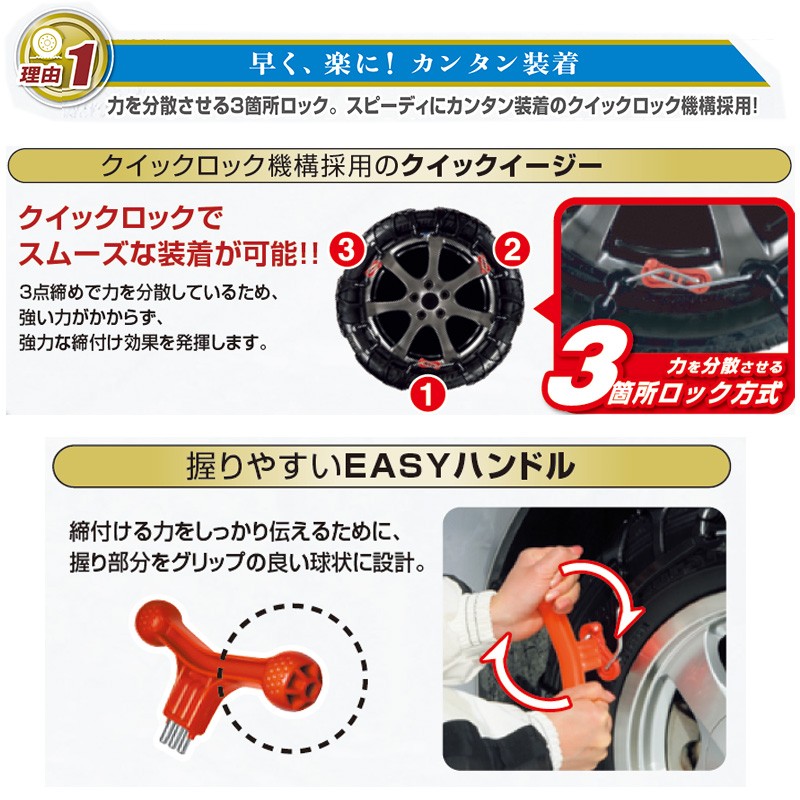 より素早い取り付けと、確実なアイスバーンへのグリップ性能で 非金属チェーンの国内販売台数No,1(当社調べ)高性能非金属チェーンです。