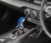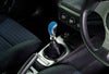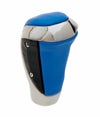 ブルーレザー+メッキ。本革は純正と同等の本革を使用。重量270gがシフトフィールをアシスト。2段階高さ選択。対応シャフト径:8mm、10mm、12mm。