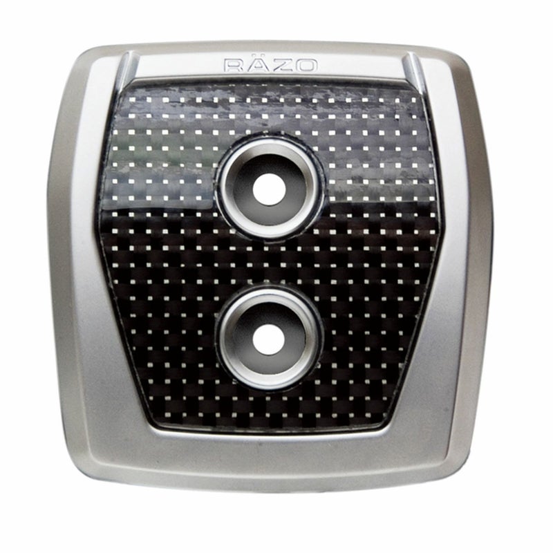 アルミダイキャストボディにカーボンファイバーを貼付けた贅沢な本格GTペダル。 フットパーキングブレーキペダル用。三次元ダイキャストデザイン。サイズ:56mm×54mm