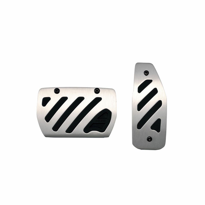 ヘアライン仕上げにアルマイト加工したアルミペダル。足元の質感大幅UP! 安心してお使い頂けるシッカリ取付機構採用。サイズ:アクセル111mm×44mm、ブレーキ62mm×100mm 板厚2mm