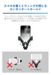 スマートフォンを置くと左右のウィングが自動的に閉じてホールドできます。スマートフォン背面に落下防止リングなどのアクセサリーを付けたままでもホールドできます。(装着位置によります)