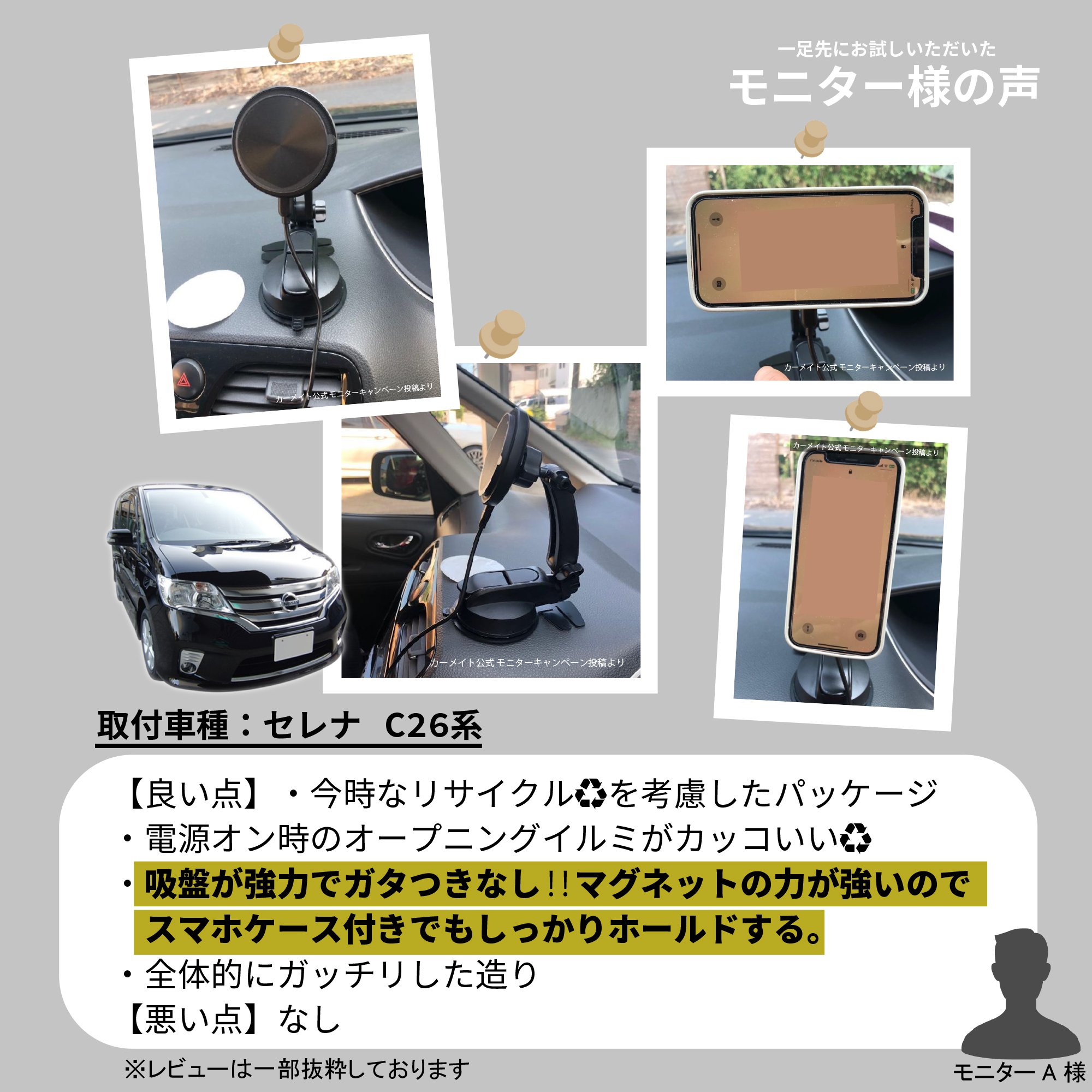 ・吸盤が強力でガタつきなしマグネットの力が強いのでスマホケース付きでもしっかりホールドする。