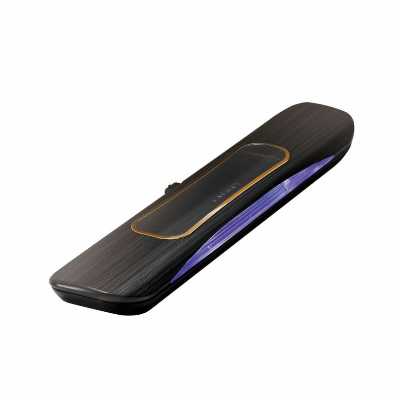 スタイリッシュなデザインのセキュリティ。パープルLEDが待機時残光点滅、衝撃感知時激しく点滅。走行中の連続振動感知で自動停止(特許登録済)。光センサー内蔵で暗くなると自動点滅開始。