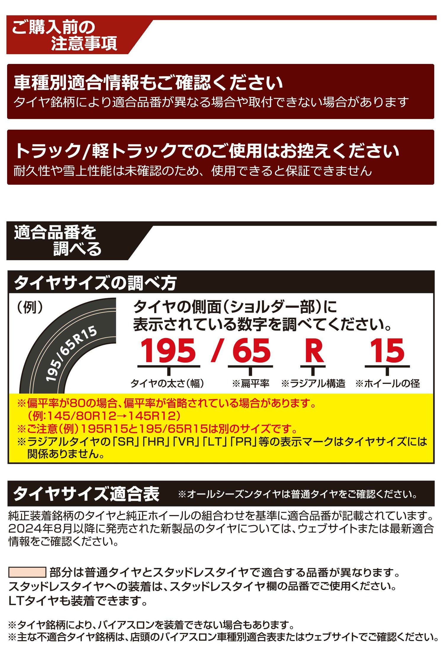 他の画像を見る カンタン × カイテキ 自動締め付けタイプの非金属タイヤチェーン EF108 バイアスロン イージーフィット ブラック ルート限定品 販売価格 ¥ 35,800 税込 ご購入前に必ず適合条件をご確認願います 詳細を見る お気に入りに登録する