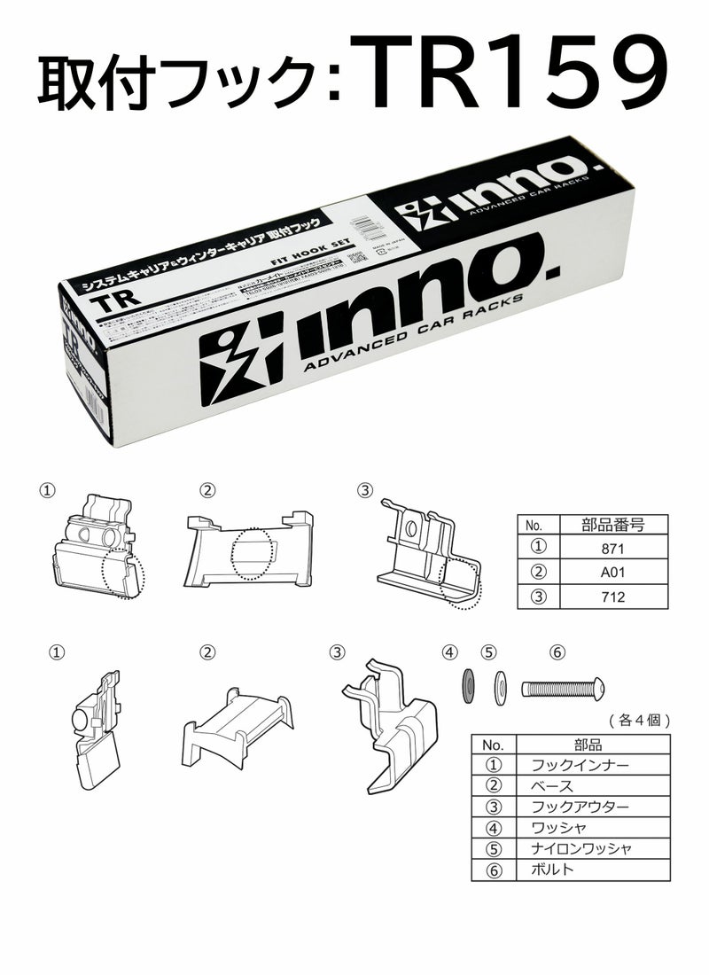 適応車種 ホンダ ヴェゼルレール付(2013.12~/H25.12~) ホンダ シャトルレール付(2015.05~/H27.05~) ホンダ フリードレール付(2019.10~/R1.10~) ホンダ フリードレール付(2024.06~/R6.6~)