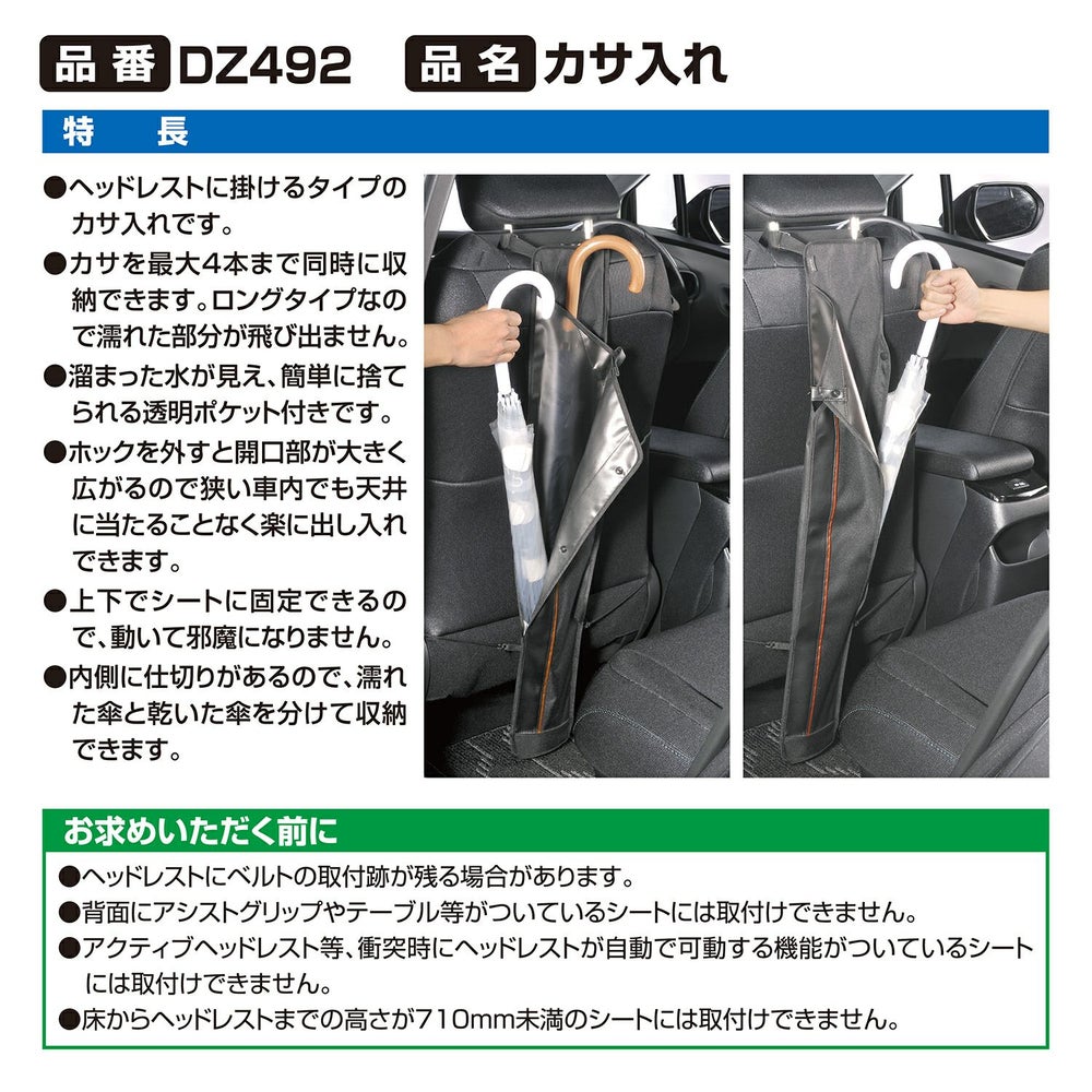他の画像を見る 70cm大型サイズもスムーズに収納 助手席用 傘入れ DZ576 ぽいっと傘入れ WEB限定品 販売価格 ¥ 2,200 税込 助手席に広げて使う 新しいタイプの傘入れ 詳細を見る お気に入りに登録する