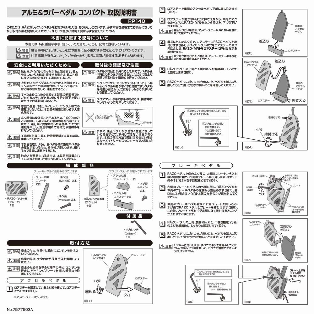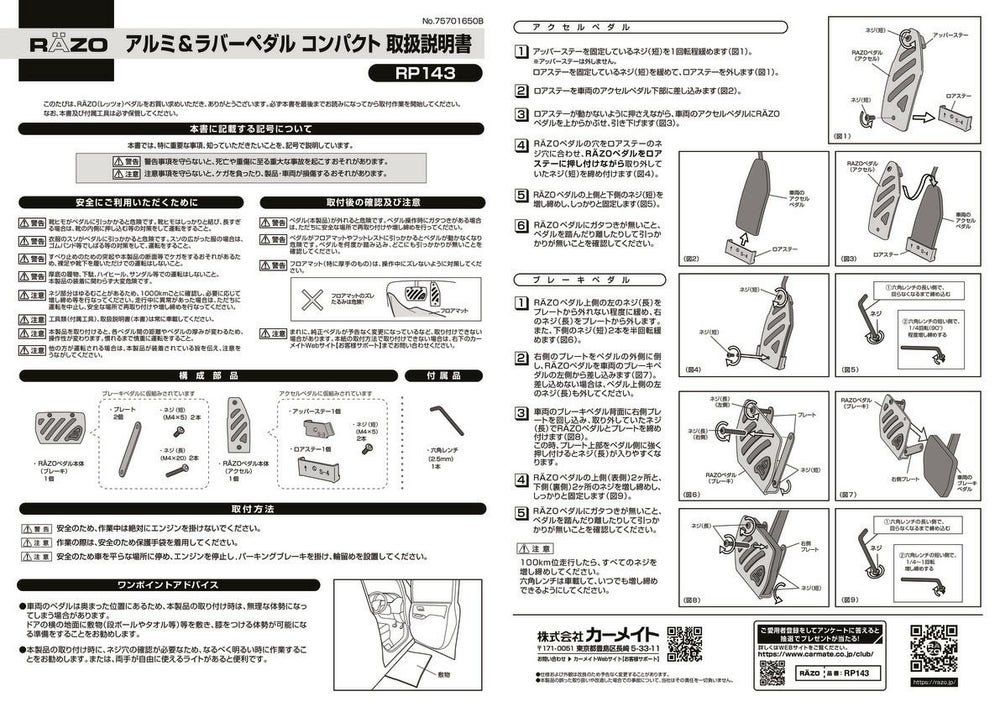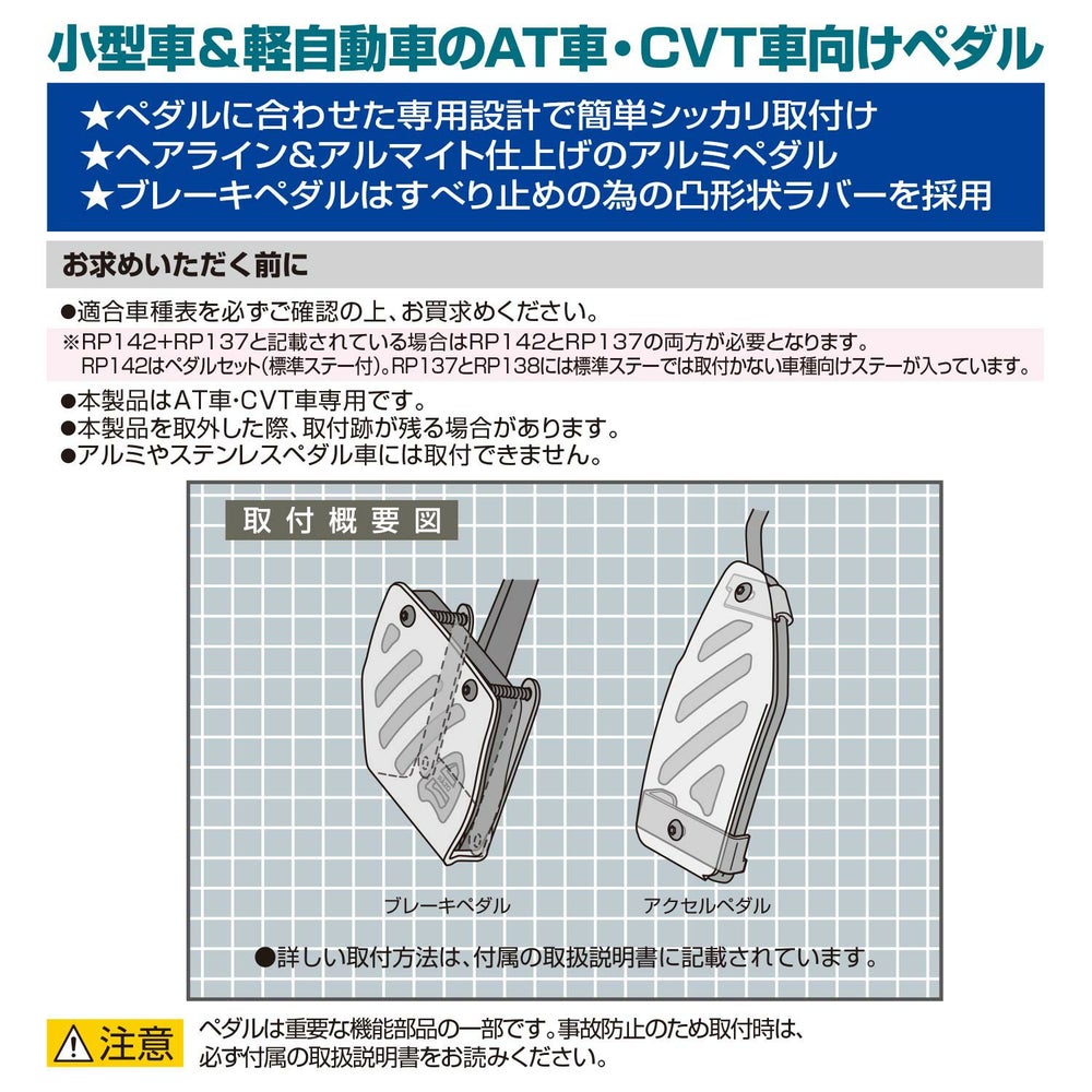他の画像を見る アルミで足元の質感UP! RP143 アルミ & ラバーペダル コンパクト SUZUKI & MAZDA 2 販売価格 ¥ 3,980 税込 アルミで足元の質感UP! 詳細を見る お気に入りに登録する