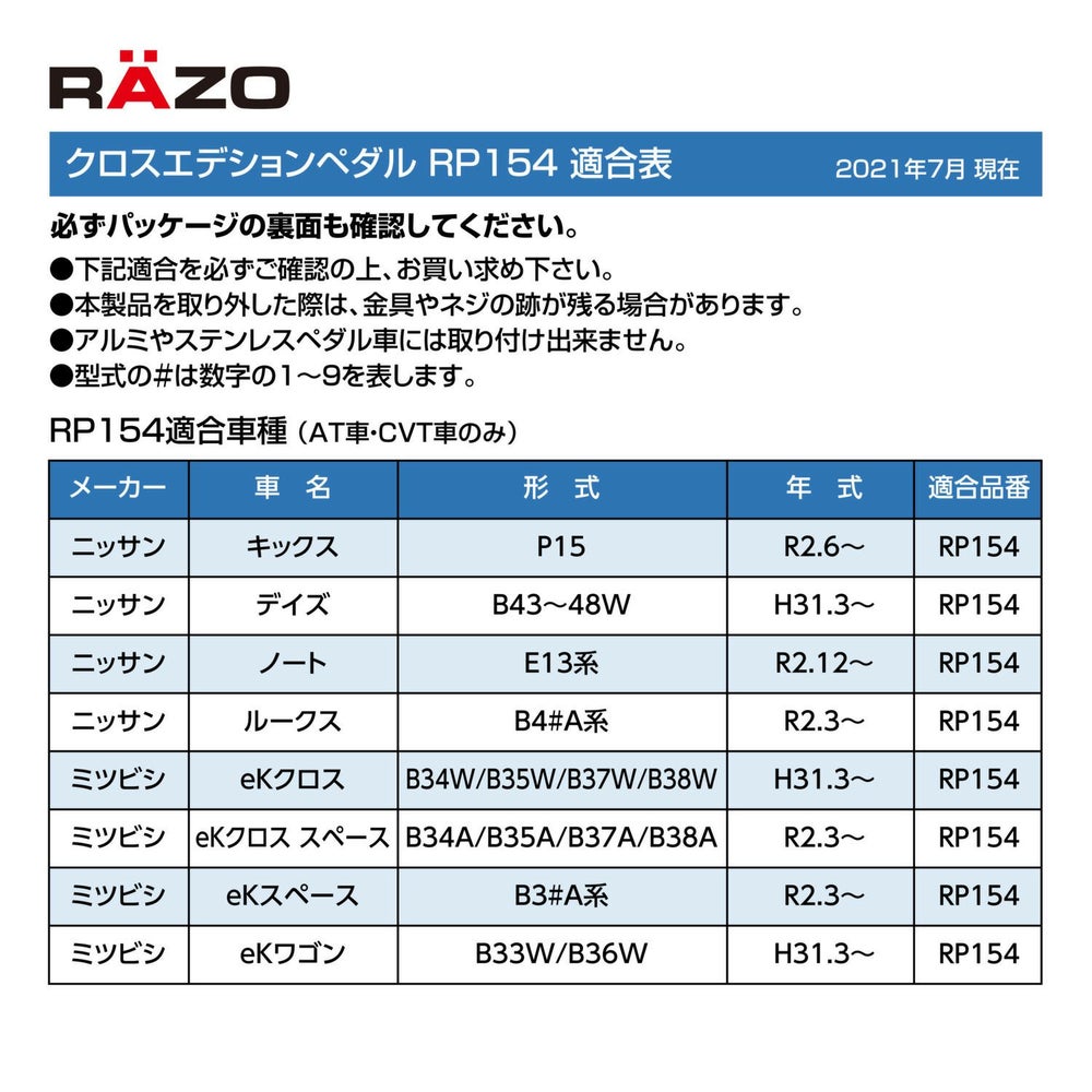 他の画像を見る アルミペダルでクロスオーバースタイルを演出! RP154 クロスエディションペダル ニッサン・ミツビシ車用 販売価格 ¥ 4,950 税込 流行のクロスオーバースタイルに最適なRAZOスポーツペダルが車種専用で登場 詳細を見る お気に入りに登録する
