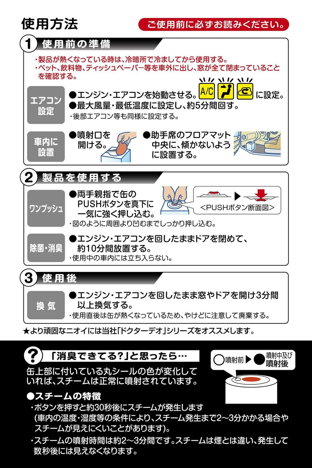 他の画像を見る ”消毒臭”が気になりにくい、メントール配合スチームが誕生!シート・内装を強力消臭! D263 ドクターデオ プレミアム スチームタイプ 浸透 メントール配合 販売価格 ¥ 1,210 税込 ”消毒臭”が気になりにくい、メントール配合スチームが誕生!シート・内装を強力消臭! 詳細を見る お気に入りに登録する