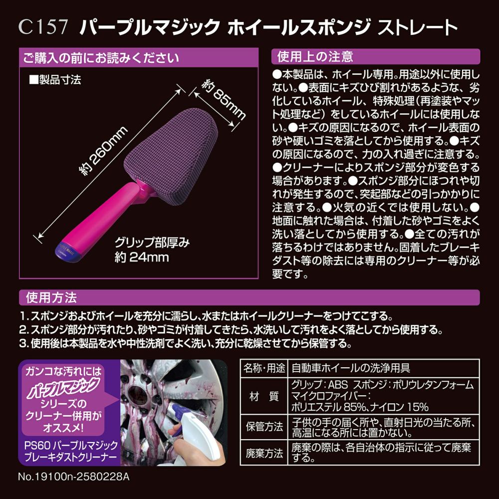 他の画像を見る ホイール洗浄専用スポンジ C157 パープルマジック ホイールスポンジ ストレート 生産終了 販売価格 ¥ 1,100 税込 専用だから、汚れが落ちる。ホイールの形に合わせて開発したホイール洗浄専用スポンジ! 詳細を見る お気に入りに登録する