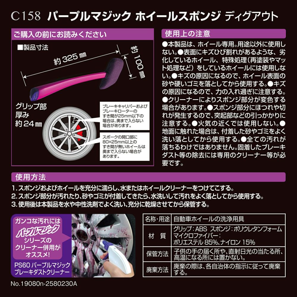 他の画像を見る ホイール洗浄専用スポンジ C156 パープルマジック ホイールスポンジ サンドウィッチ 生産終了 販売価格 ¥ 1,100 税込 専用だから、汚れが落ちる。ホイールの形に合わせて開発したホイール洗浄専用スポンジ! 詳細を見る お気に入りに登録する