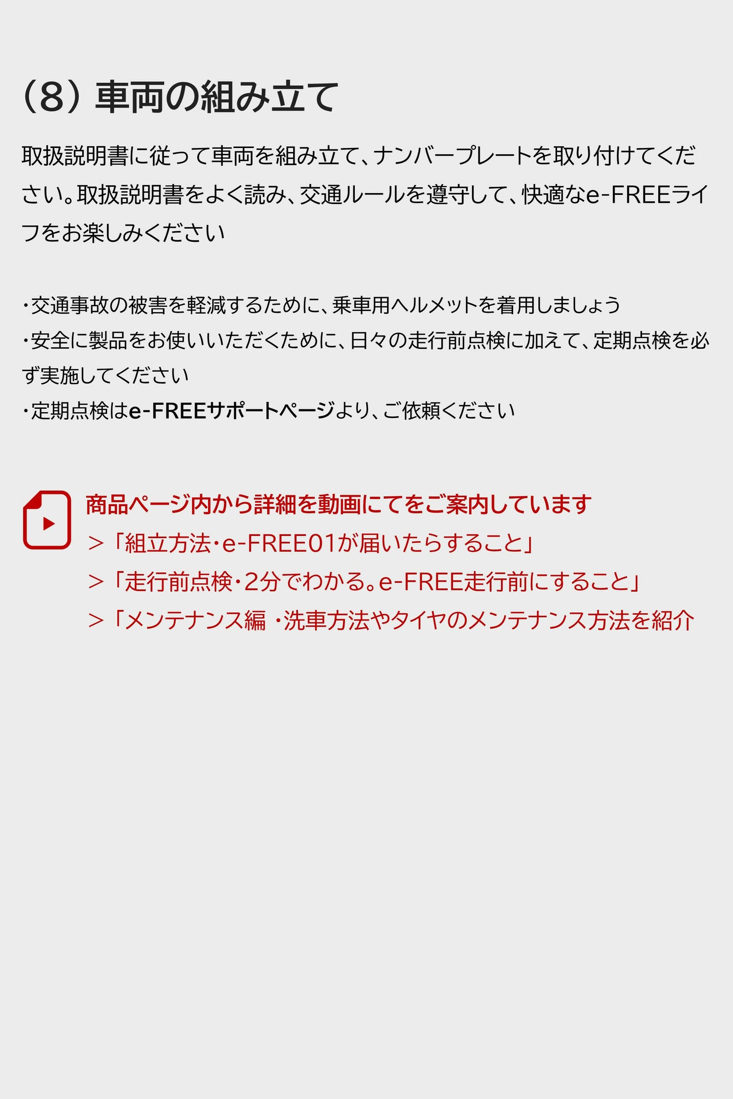 他の画像を見る e-FREE 専用パーツ BER016 e-FREE 01 フットスタンド 販売価格 ¥ 2,200 税込 こちらはサービスパーツのため単品ではご使用いただけません 詳細を見る お気に入りに登録する