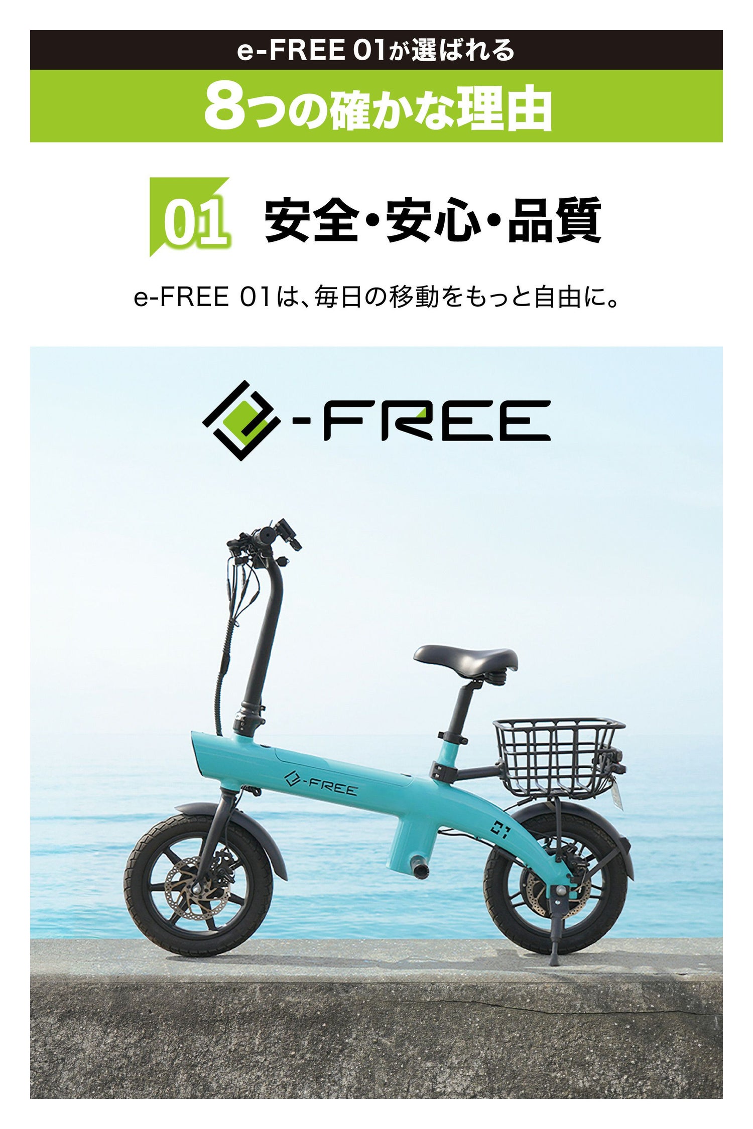 他の画像を見る 漕がない快感。e-FREEで世界が変わる BE402 e-FREE 01 コーラルブルー 数量限定 販売価格 ¥ 162,800 税込 この商品は「特定小型原動機付自転車性能等確認制度適合品」です 詳細を見る お気に入りに登録する